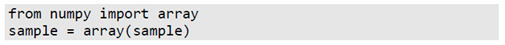 Eventualmente, se tendría el mismo resultado como un arreglo matricial del paquete NumPy mediante un objeto de tipo array a partir de la lista anidad así: