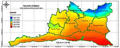 La interpretación de los datos símicos de la provincia,señalan que las áreas de mayor peligro sísmico se encuentran al sur de la provincia, en los municipios costeros Guamá y Santiago de Cuba (Fig. 10).