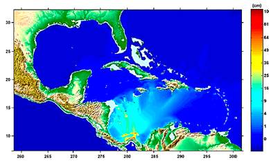 NOAA/NWS. Modelo de la amplitud de las olas generadas por el terremoto de 1882 cerca de Panamá. Programa de alerta de tsunamis del Caribe del Servicio Meteorológico Nacional de EE.UU. y la Universidad de Puerto Rico en Mayagűez, Parte 3, [en línea]. 2013. Disponible en: http://www.meted.ucar.edu/tsunami/strike_carib_es/_ iframe/s4_p6.htm