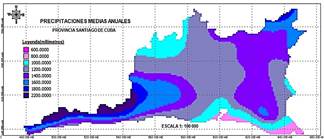 En lo referente al clima, Santiago de Cuba es una de las provincias más calurosas del país, con una temperatura máxima media de 32,3°C y una mínima media de 23°C en la ciudad cabecera, la lluvia media total anual es de 1393.9 mm, en las montañas las temperaturas son más frescas y llueve más. [17] (Fig. 3).