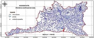 La hidrografía (tanto de la parte sureste como la suroeste de la provincia) está compuesta por ríos de trazos cortos, rápidos e intermitentes en la mayor parte del año, debido a la morfología del relieve, los cuales en temporada lluviosa arrastran una gran cantidad de sedimentos hacia las partes bajas de las cuencas, por lo que su actividad erosiva es significativa. Entre los ríos más importantes de la parte sur se citan el Chivirico, Sevilla, Paradas, San Juan, Daiquirí y Baconao. En el noroeste se encuentran las principales cuencas hidrográficas, en las que se ubican los dos mayores embalses de la provincia (Protesta de Baraguá y Carlos Manuel de Céspedes) correspondientes a los ríos Cauto y Contramaestre respectivamente (Fig. 6).