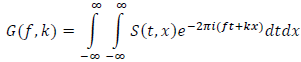 Une section sismique est fonction des variables du temps et de la distance. La transformée de Fourier en 2D d’une fonction S(t,x) est (Bo et al., 2019):
