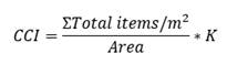 where CCI determines the state of cleanliness (absence of ML) and the habits required to achieve and maintain that state (Rangel-Buitrago et al., 2019a, 2019b), estimated by total items quantified, divided by the total sampling area (m2) and multiplied by the K coefficient equal to 20. Based on the scale provided by Alkalay et al. (2007), resulting values are grouped into five different classes, ranging from I ‘very clean’ to V ‘extremely dirty’.