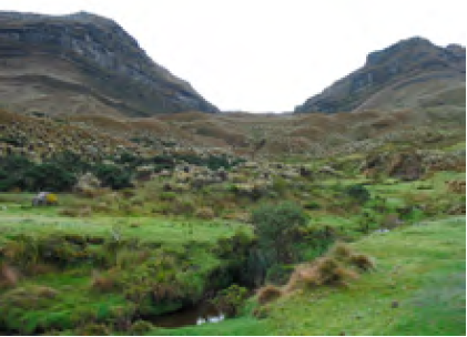 Superficie estructural o de erosión horizontal, elevada y de suelo áspero, pedregoso, sin cultivos ni viviendas, y cubierta por una vegetación pobre. Es un lugar yermo, raso y desabrido. Los páramos, son ecosistemas de montaña que se encuentran ubicados discontinuamente a altitudes mayores de 3.000 m. sobre el nivel del mar aproximadamente. La gran altura en sitios tropicales produce un clima especial que puede resumirse en “invierno todas las noches y verano todos los días”. La parte más alta de los páramos, cerca de las nieves eternas, se denomina superpáramo y está formado por un suelo rocoso cubierto escasamente por plantas muy resistentes.