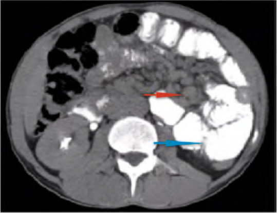 La atrofia vellositaria en la biopsia duodenal se considera un criterio Marsh 3a, compatible con EC del adulto5. No obstante, no es diagnóstica en ausencia de anticuerpos IgA antigliadina o antitransglutaminasa3. Por otra parte, la inmunodeficiencia selectiva de IgA se presenta en 1-2 de cada 100 casos de EC, dificultando así su diagnóstico1,6. En nuestro caso, se confirmó la EC con la determinación de los anticuerpos tipo IgG antigliadina y antitransglutaminasa, recomendados en casos de sospecha de EC asociada a inmunodeficiencia de IgA3, de 23,5 U/ml [<10] y 234 U/ml [<7] respectivamente. También fue positiva la determinación del HLA-DQ2, gen asociado a la forma familiar de enfermedad celiaca1,3. Posteriormente se diagnosticó de EC su hijo. Tras 6 meses de dieta libre de gluten se normalizó el peso, la hipogammaglobulinemia, los niveles de IgG antigliadina y antitransglutaminasa y la IgM total, persistiendo el déficit selectivo de IgA. La TAC de control objetivó una mejoría significativa del patrón de malabsorción con desaparición de las adenopatías mesentéricas (figura 2). El presente caso muestra las dificultades que se puede encontrar el médico de familia para el diagnóstico de la EC del adulto cuando esta se presenta con inmunodeficiencia selectiva de IgA. Para evitar los resultados falsos negativos, que en este caso podrían habernos conducido a la realización de una laparotomía exploradora y al retraso en el diagnóstico de EC en el hijo del paciente, es necesario tener en consideración esta asociación, y solicitar que los laboratorios determinen los niveles de IgA total cuando exista elevada sospecha de EC y los autoanticuerpos específicos antitransglutaminasa de tipo Ig A resulten negativos1,7.