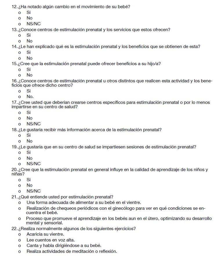 Encuesta de conocimiento sobre estimulación prenatal