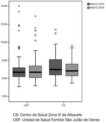 Objective: The aim of the study is to know the changes in the degree of control of patients with type 2 diabetes mellitus in a Spanish health center (public, SESCAM) and a Portuguese health center (Functional Health Unit) after a two-year follow-up period.