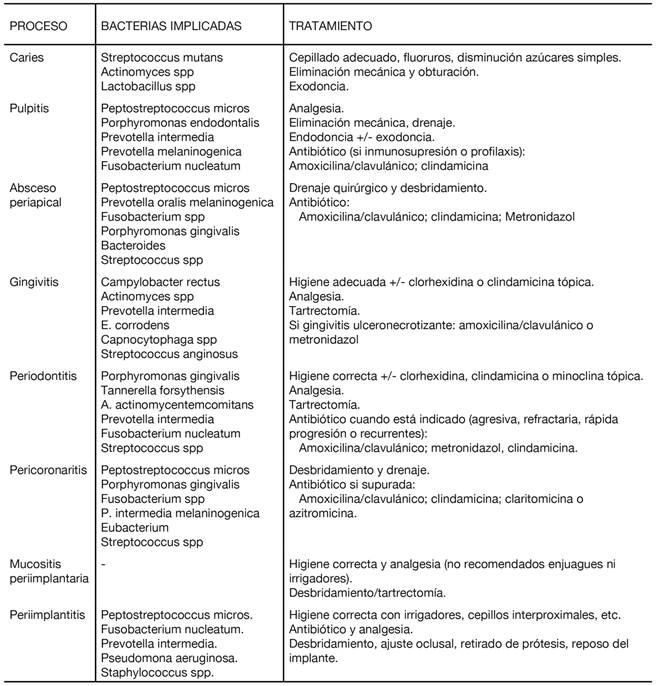 En determinadas circunstancias, si se dan condiciones favorables, los microorganismos comensales pueden comportarse como patógenos oportunistas. Las infecciones en la cavidad oral son polimicrobianas, aislándose un promedio de cinco especies diferentes por proceso. En más del 95 % de los casos la flora es mixta, constituida fundamentalmente por cocos grampositivos anaerobios facultativos y bacilos gramnegativos anaerobios estrictos3. Los bacilos gramnegativos facultativos son raros en adultos sanos, siendo casi exclusivos de pacientes con enfermedades graves, hospitalizados y ancianos.