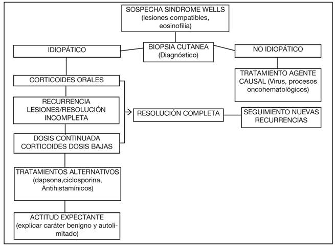 3. Gómez-Zubiaur A, Medina-Montalvo S, Piteiro-Bermejo AB, Vélez-Velázquez MD, Beà-Ardébol S, Trasobares-Marugán L. Síndrome de Wells: presentación de 2 casos y revisión de la literatura. Piel (Barc). 2018; 33 (1): 5-13.