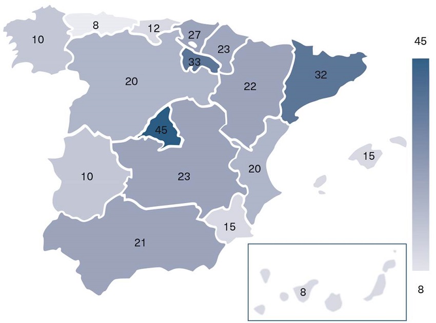 La presión asistencial y el seguimiento de pacientes con COVID-19 en el domicilio fue diferente según cada CCAA, por la variabilidad en la prevalencia durante la primera ola. Las grandes ciudades y las CCAA que mayor impacto tuvieron en la primera ola, como Madrid, Cataluña, País Vasco y La Rioja, fueron también los lugares en los que sus MF sintieron más la presión de la pandemia, tanto a nivel de visitas en las consultas de respiratorio como con la atención telefónica (figura 1).