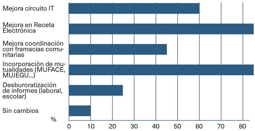 Algunas de ellas son claramente de carácter temporal, mientras la pandemia lo requiera, pero otras, como la profesionalización de los administrativos sanitarios o el triaje de enfermería para las consultas no demorables (por ejemplo), deberían mantenerse en el futuro. Mención especial merecen las medidas desburocratizadoras, demanda antigua y reiterada de la Atención Primaria, que no solo deberían quedarse, sino que deberían ampliarse a más procesos (visados, informes, etc.). Todas estas iniciativas mostradas en la figura 5 facilitaron la adecuación del tiempo de los profesionales a la atención y coordinación25.