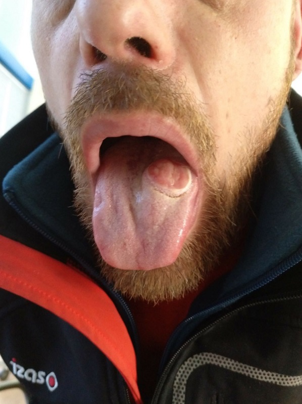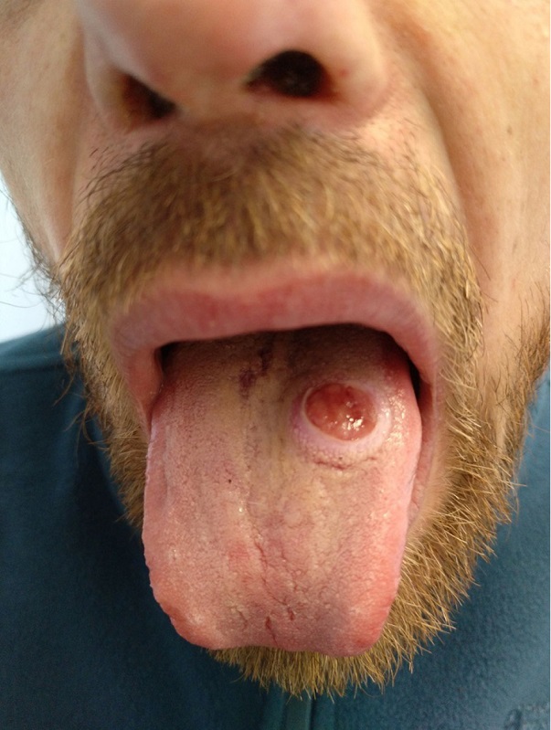 Presentamos el caso de un paciente joven con esta rara tumoración que apareció en pocos días en la parte posterior de su lengua.