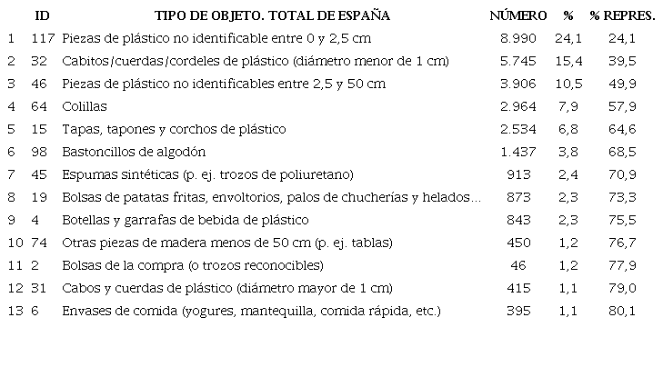 En un informe de resultados del programa de seguimiento de basuras marinas en las playas, realizado en nuestro país, entre los objetos predominantes encontrados en el conjunto de las cinco demarcaciones marinas estudiadas, el cuarto lugar lo ocuparon las colillas, que suponían un 8% del total (tabla 1)17.