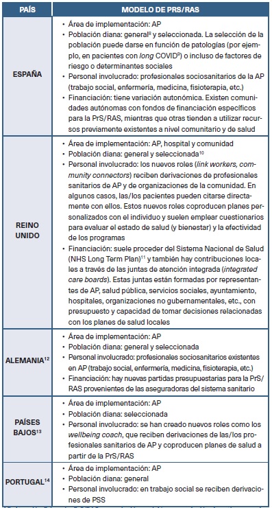 En la actualidad existen programas de PrS/RAS en al menos 17 países6. En Europa hay evidencia científica sobre iniciativas en Alemania, Dinamarca, Finlandia, Suecia, España, Irlanda, Países Bajos, Portugal y el Reino Unido, con gran variabilidad en su implementación. En la tabla 3 se muestran algunos de los modelos de PrS/RAS implementados en Europa que han sido publicados en la literatura científica y que comentamos brevemente a continuación. No obstante, los ejemplos citados no son necesariamente representativos de toda la actividad de PrS/RAS que ocurre en cada uno de los países a nivel local.