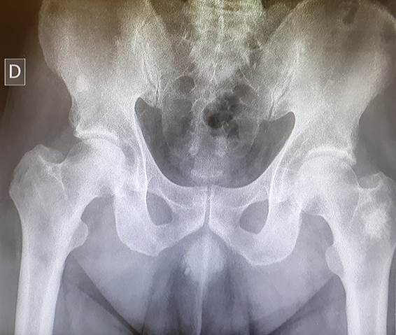 En la exploración física, el paciente presentaba dolor a la palpación del trocánter femoral izquierdo y con las maniobras de abducción de cadera.