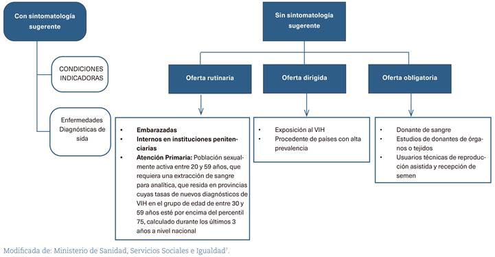 En España existen una Guía de recomendaciones para el diagnóstico precoz del VIH en el ámbito sanitario7 (figura 1), la cual sería recomendable actualizar de acuerdo con la última evidencia disponible (A-II).