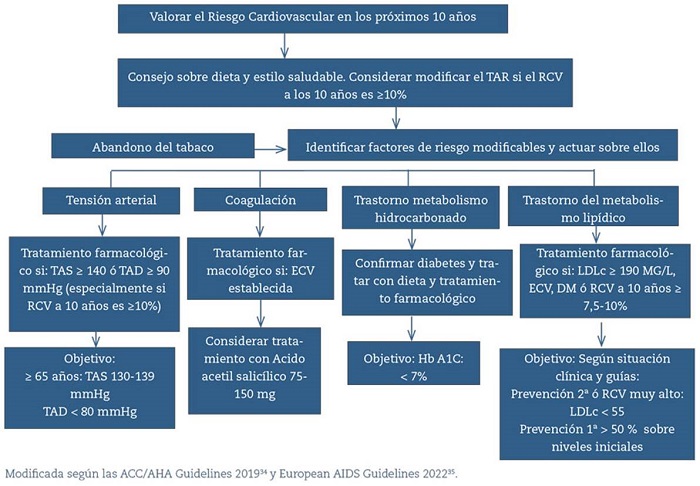 En el manejo de la dislipemia, diabetes mellitus e hipertensión arterial, se recomienda utilizar el mismo algoritmo terapéutico que en la población general, teniendo en cuenta las interacciones con el TAR (A-II) (figura 2).