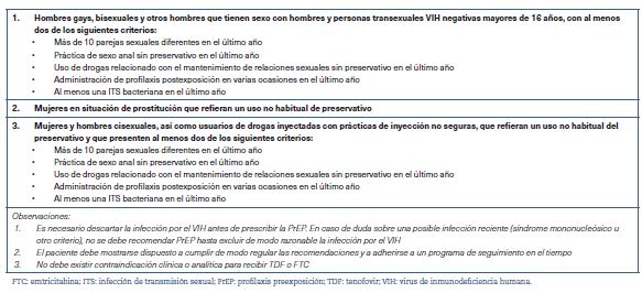 Ofrecer la profilaxis preexposición (PrEP) (A-I) y postexposición (PPE) (A-II) en aquellas situaciones en las que están indicadas, siguiendo las recomendaciones actuales3 (tablas 1 y 2).