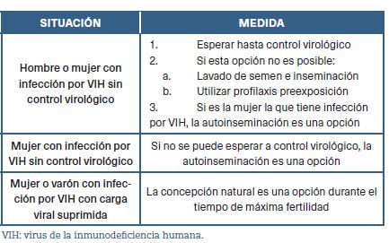 En las PVIH, es necesario planificar la gestación en la mejor situación clínica posible, minimizando los riesgos para la mujer, la pareja y el feto, exponiendo las distintas opciones reproductivas (A-II) (tabla 10).