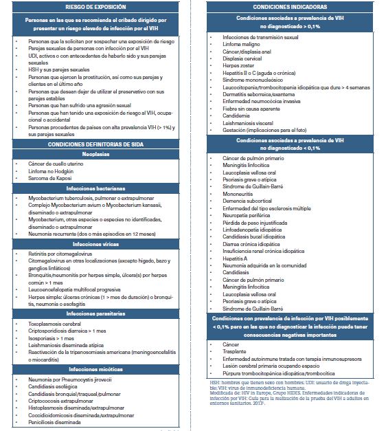 Es necesario difundir las guías de cribado que identifican a las personas expuestas a un mayor riesgo de adquirir la infección por el VIH (A-II).