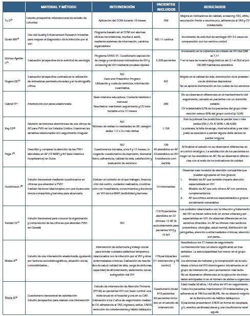 El cuidado compartido combina las ventajas de la AP (proximidad y experiencia en enfermedades crónicas) con la experiencia del especialista en infección por VIH. Pese a que está recomendado por la Organización Mundial de la Salud (OMS) desde 2004, existen pocos datos que evalúen estos modelos en países con rentas elevadas, habiendo obtenido en general buenos resultados en salud (tabla 4).