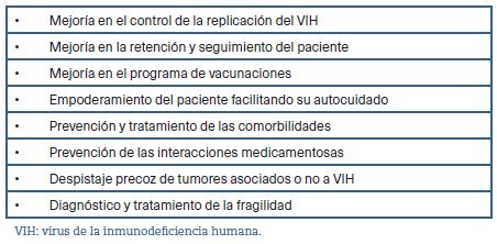 Debería implantarse lo antes posible un modelo de atención crónica y compartida entre AP y AH para las PVIH, pues conllevaría grandes beneficios tanto para el paciente como para el sistema sanitario (B-II) (tabla 5).