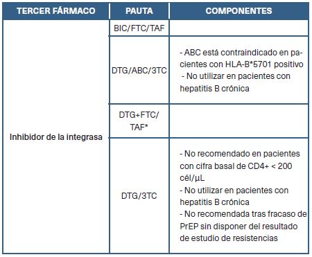 El TAR consiste en la combinación de dos o tres fármacos antirretrovirales. La evaluación de laboratorio y los aspectos relacionados con la elección y monitorización del TAR se especifican en la guía correspondiente de GeSIDA (tabla 7)18.