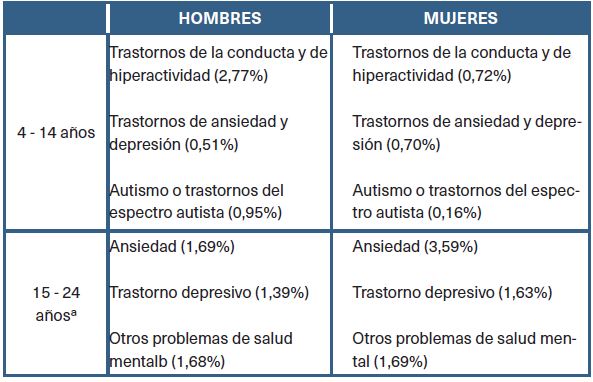 La salud infantojuvenil es un tema que viene preocupando desde hace varios años por el incremento de casos de trastornos de salud mental. La preocupación no es solamente sanitaria, sino también social y política. La pandemia empeoró los datos, pero desde el año 2017 se viene observando un incremento de la prevalencia tanto en el ámbito nacional como en el europeo1-3. Los datos a nivel europeo estiman que un 13% de la población infantil y de adolescentes menores de 19 años sufrieron algún problema de salud mental. Se observa que las tasas son más altas para hombres hasta los 14 años, y en la franja de 14-19 años hay más afectación en mujeres2,4. En el ámbito nacional, cabe mencionar que la Encuesta Nacional de Salud (ENSE)3 considera la franja de edad de 4-14 años como infancia y a partir de los 15 años ya habla de personas adultas, por lo que incluye los problemas de salud a partir de esta edad en el del grupo de personas adultas, sin hacer diferenciación de los problemas propios de la adolescencia, etapa que dura hasta los 19 años, según la Organización Mundial de Salud5. Se observa que los niños de 4-14 años tienen un riesgo de mala salud mental del 13,2%, siendo mayor en niños (15,6%) que en niñas (10,5%). Si se tiene en cuenta los grupos de edad, los más afectados fueron los de 4-9 años (14,2%) con respecto al grupo de 10-14 años, sin diferencias a nivel de género. La clase social a la que pertenecen no es baladí, cuanto más desciende el nivel socioeconómico los problemas de salud mental se incrementan, observándose mayor prevalencia en niñas de clase social baja (21,6%) que en niños (20,38%)1 de 4-14 años. El Barómetro de Juventud, Salud y Bienestar del año 20234 realiza un estudio sobre la salud de los jóvenes entre 15 a 29 años. Para la franja de edad de 15-19 años habla de que un 15,6% experimentó con frecuencia problemas de salud mental, siendo más habitual en mujeres (20,7%) que en hombres (13,3%). Con respecto a nivel socioeconómico, se observa que las personas pertenecientes a clase social baja presentan más problemas de salud mental (24,3%), sin hacer distinción entre géneros en dicho informe.