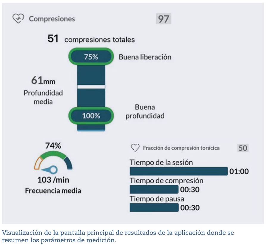 Puntuación total (%): ponderación de la aplicación en función de los resultados globales en función de un algoritmo elaborado por Laerdal Medical en colaboración con American Heart Association.