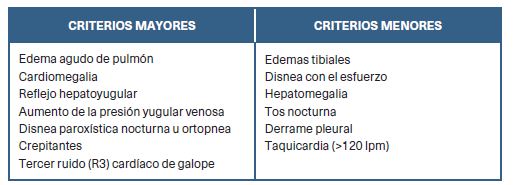 Criterios diagnósticos de Framingham para la insuficiencia cardíaca