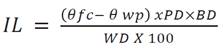 Where: IL = irrigation level (cm), Өfc = field capacity (%), Өwp = permanent wilting point (%), PD = pot depth (cm), BD = bulk density (g cm-3), WD = water density (g cm-3). To convert IL to water volume (WV) in cm3, IL, was multiplied per pot area (cm2). The water volume calculation to be applied per treatment (Equation 2).