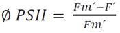 Where: Fm´ = Maximum fluorescence levels during a treatment is induced by saturating light pulse application, which closes all PSII reactions centers, and F´ = Is the level of the fluorescence curve during treatments and shortly before a saturating pulse is applied.