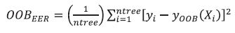 Where, yi is the initial ensemble error classification on OOB. As a bootstrap sample is added, an OOB error (yOOB (Xi )) is estimated and repeating k-times. Those mtry and ntree which have the lowest OOBEER should be selected for the model (Breiman, 2001).
