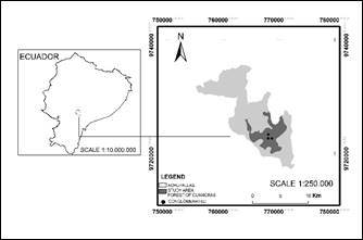 The research was carried out in the upper part of the native forest in the Guangra sector, located in the Achupallas parish, Alausí, province of Chimborazo, at an altitude of 3000 - 3400 m.a.s.l. (Figure 1).