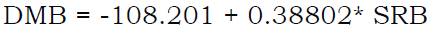 The adjustment results to the linear model to describe the relationship between DMB and SRB. The equation of the adjusted model is as follows (Equation 5):