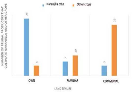 In the rural community of Wamani, data on land tenure indicated that 70% own land; 14% are communal lands and 16% correspond to family lands (inheritance). This reflects a pattern of own land distribution which is favorable for the Naranjilla crop continuity in the study area.
