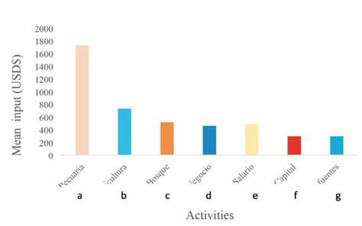 In Figure 8, the behavior of the average crop input is presented by different activities. Livestock activity was the highest input.