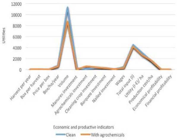 The performance of the productive and economic indicators from Naranjilla crop for both forms of clean and conventional management is shown in Figure 9. The T test for independent samples indicated that there are no significant differences among indicators (p> 0.05).