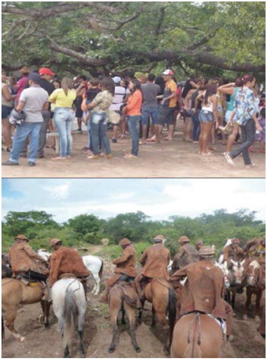 In this aspect we can see the cultural dimension interlacing itself with the social dimension. However, in order to reach this integrated dimension, it is necessary to have policies that value, spread and ensure that everybody has access to what states to be traditional, both in the urban as well as in the rural environment. This reality was highlighted during the celebration, in which pequi collectors could be distinguished from neighboring city dwellers, as they gathered and exchanged experiences, celebrating one more year of collection. Moreover, this was a space for celebrating, giving thanks, reuniting with friends and family, and being cheerfully interlaced with the local culture. In Figure 2A and 2B we can see pictures of the traditional cowboys on their horses, the pequizeiros and many people having fun during the "Pequizeiros Ranch Party".