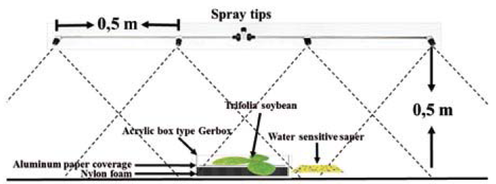 Considering the aforementioned, the aim of this study was to evaluate the chemical control of Asian soybean rust using different tips and spray nozzles under controlled conditions.
