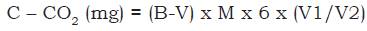 [equation 2]where: B = volume of HCl used for the blank titration; V = volume of HCl used for the sample titration (mL); 6 = atomic mass of carbon (12) divided by moles of CO2 that react with NaOH; V1 = total volume of NaOH used for CO2 capture; V2 = volume of NaOH used for the titration (mL).