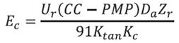 [Ecuación 2]En este ensayo, teniendo en cuenta las condiciones climáticas de la zona, se consideró un valor de Ktan para el tanque clase A de 0.85 (Allen, et al., 2006); mientras que el coeficiente de cultivo Kc, de acuerdo con Allen et al. (2006) y teniendo en cuenta la escasa información local sobre valores de este coeficiente para esta especie, además de su característica de cultivo permanente en constante producción de flores y frutos con cobertura total de suelo, se escogió un valor de 1.10 para la duración del ensayo (6 meses). Es necesario mencionar que el valor 091 Ec es equivalente a la evaporación medida en el tanque clase A, siendo Ec la evaporación producida en el Cenirrómetro que se toma de referencia para determinar el momento del riego.