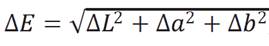 ΔL = L*2 - L*1: Luminosity difference, Δa = a*2 - a*1 = Red - green difference, Δb = b*2 - b*1 = Blue - yellow difference.