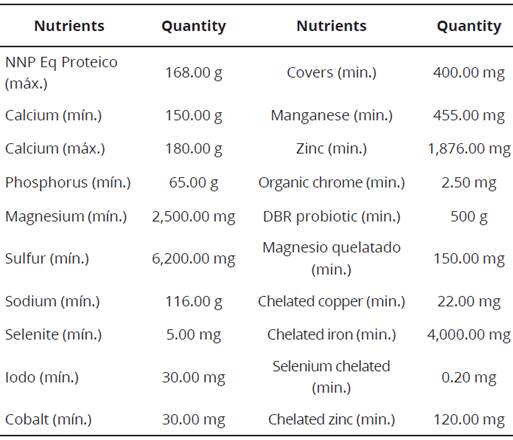 The experiment was carried out at Nossa Senhora Aparecida Farm (20.43°S, 55.28°W), municipality of Terenos, Mato Grosso do Sul, Brazil, on 891 nulliparous Nellore heifers from July 17, 2015 to September 16, 2015. The animals were maintained in pastures of Urochloa brizantha cultivar Marandu with a protein mineral supplement supplied ad libitum (Table 1). All animals were previously identified and evermined, and the groups were homogenized to determine the body condition score (BCS) of the groups, using the scale of 1 to 5 as proposed by Edmonson et al. (1989)).