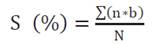 [Ec.1]Donde: S (%) = severidad de la enfermedad expresada en el porcentaje de tejido afectado. n = número de unidades de muestreo clasificadas en cada grado. b = grado de severidad. N = número total de unidades de muestreo observadas.