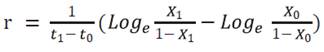 [Ec.2]Dónde: r = tasa de desarrollo, t1 = tiempo final, t0 = tiempo inicial, X1 = severidad final, X0 = severidad inicial.