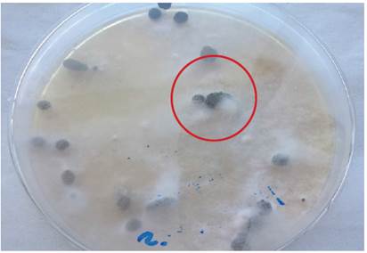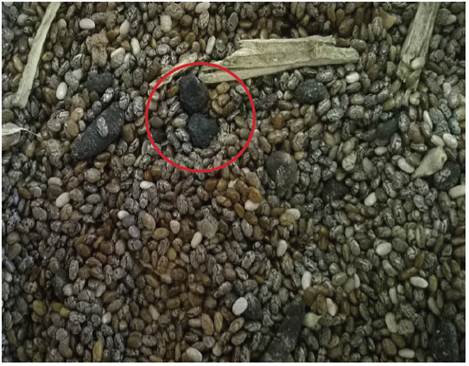 En la cosecha se encontraron esclerocios acompañando los granos de chía (Figura 3), lo que indica la presencia de S. sclerotiorum (Figura 4).