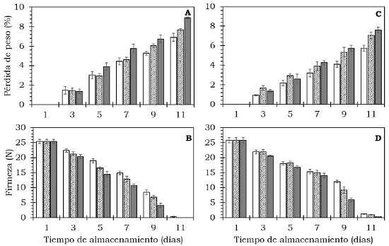 Pérdida de peso y de firmeza de frutos