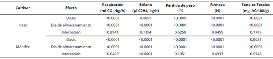 Por otra parte, en ambos cultivares la firmeza de la pulpa disminuyó (P < 0.05) con el avance del proceso de maduración (Figura 2, Tabla 1).