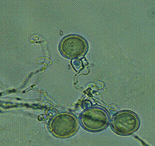 Se evaluaron 40 clamidosporas, obtenidas de cultivos crecidos en medio PDA30 a 30 ºC en oscuridad, durante 15 días y se consideró la forma, la posición y el diámetro. Todas las observaciones y mediciones se hicieron con un aumento de 100X, utilizando un microscopio Nikon E200, provisto de una cámara digital y acoplado a un analizador de imágenes.